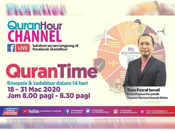 Kempen ‘Turn Quarantine to QuranTime’ di Facebook QuranHour adalah untuk memanfaatkan masa terluang sepanjang Perintah Kawalan Pergerakan kata Ketua Pegawai Eksekutif Yayasan Warisan Ummah Ikhlas (WUIF), Marhaini Yusof.